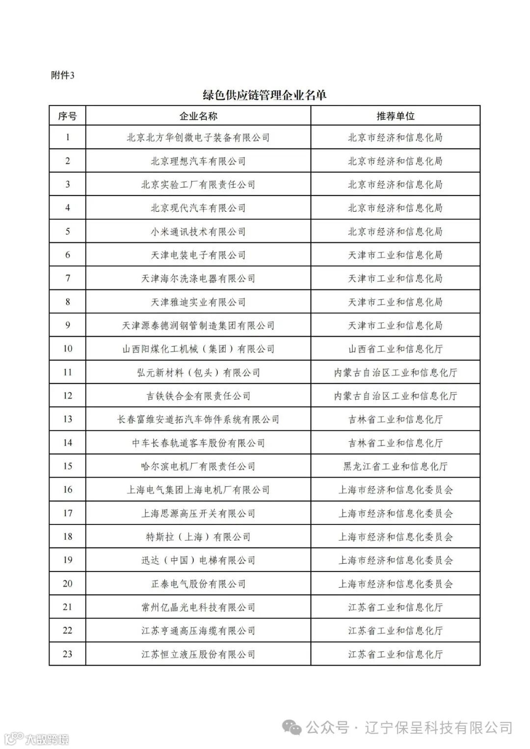 3. 绿色供应链管理企业名单