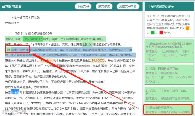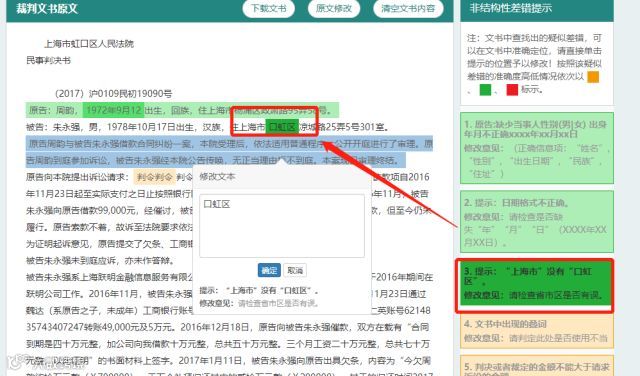 “裁判文书纠错系统”的亮点