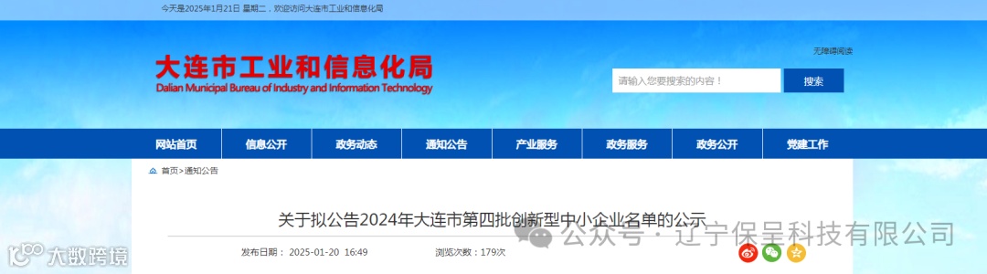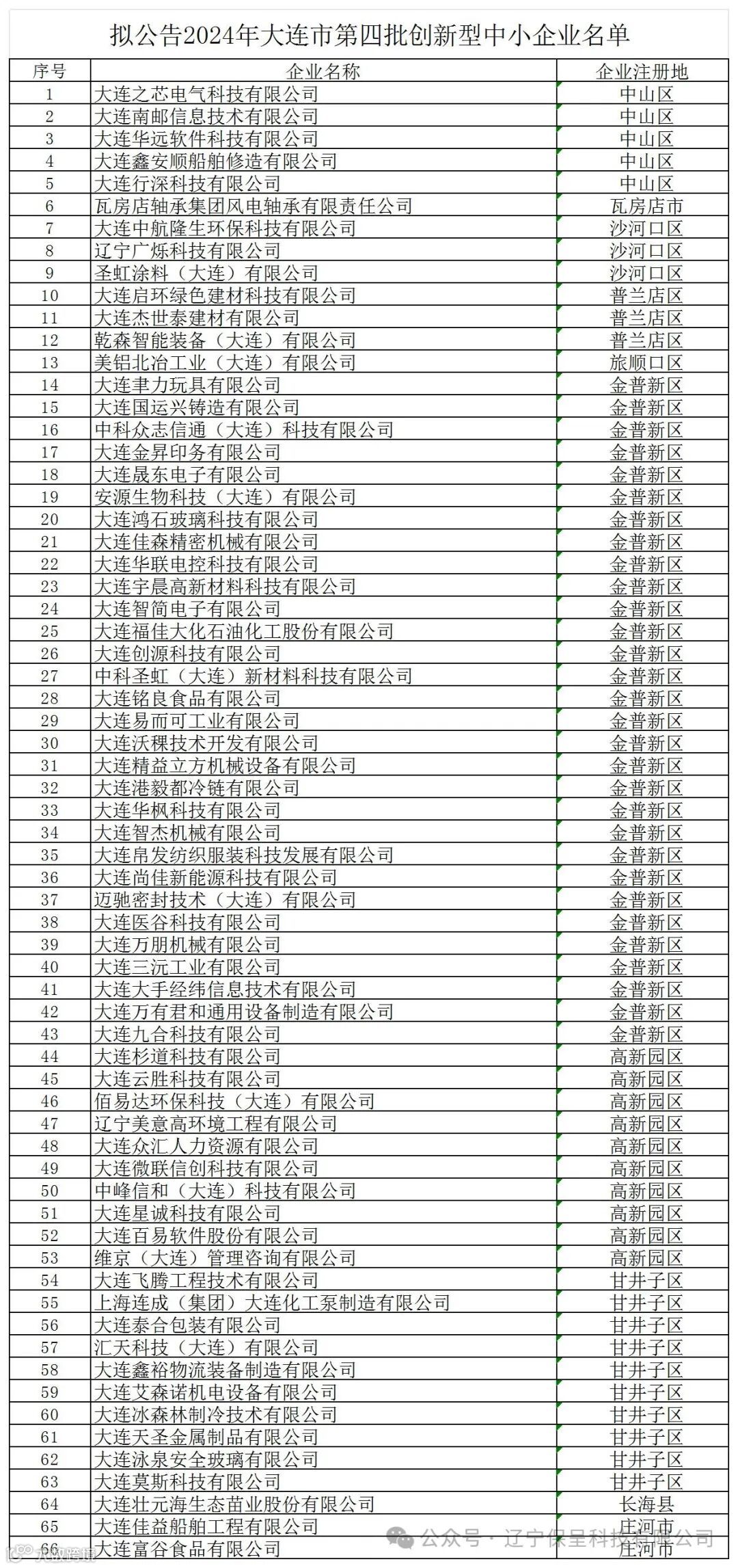 保呈快讯内容:关于《关于拟公告2024年大连市第四批创新型中小企业名单的公示》-内容分享