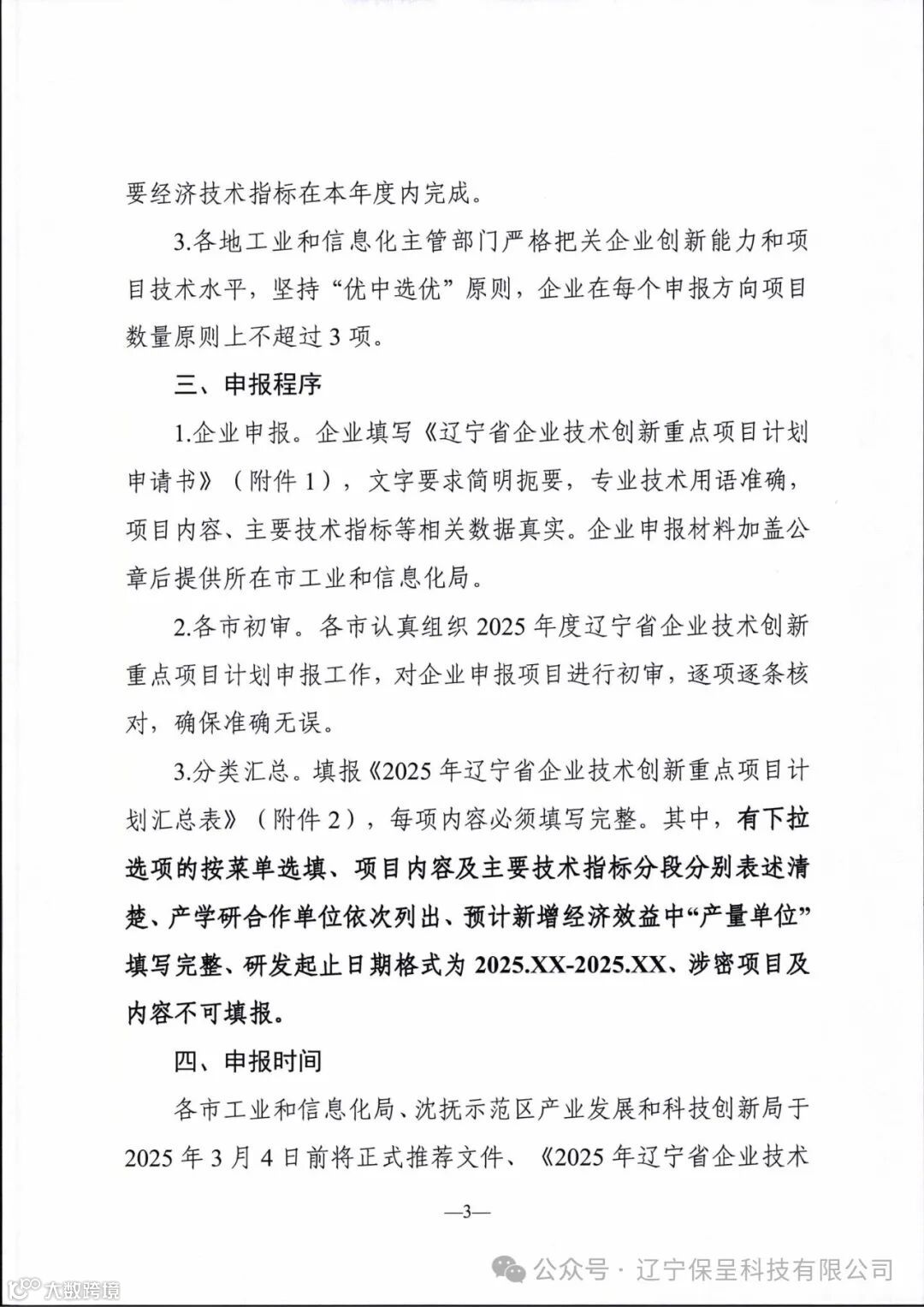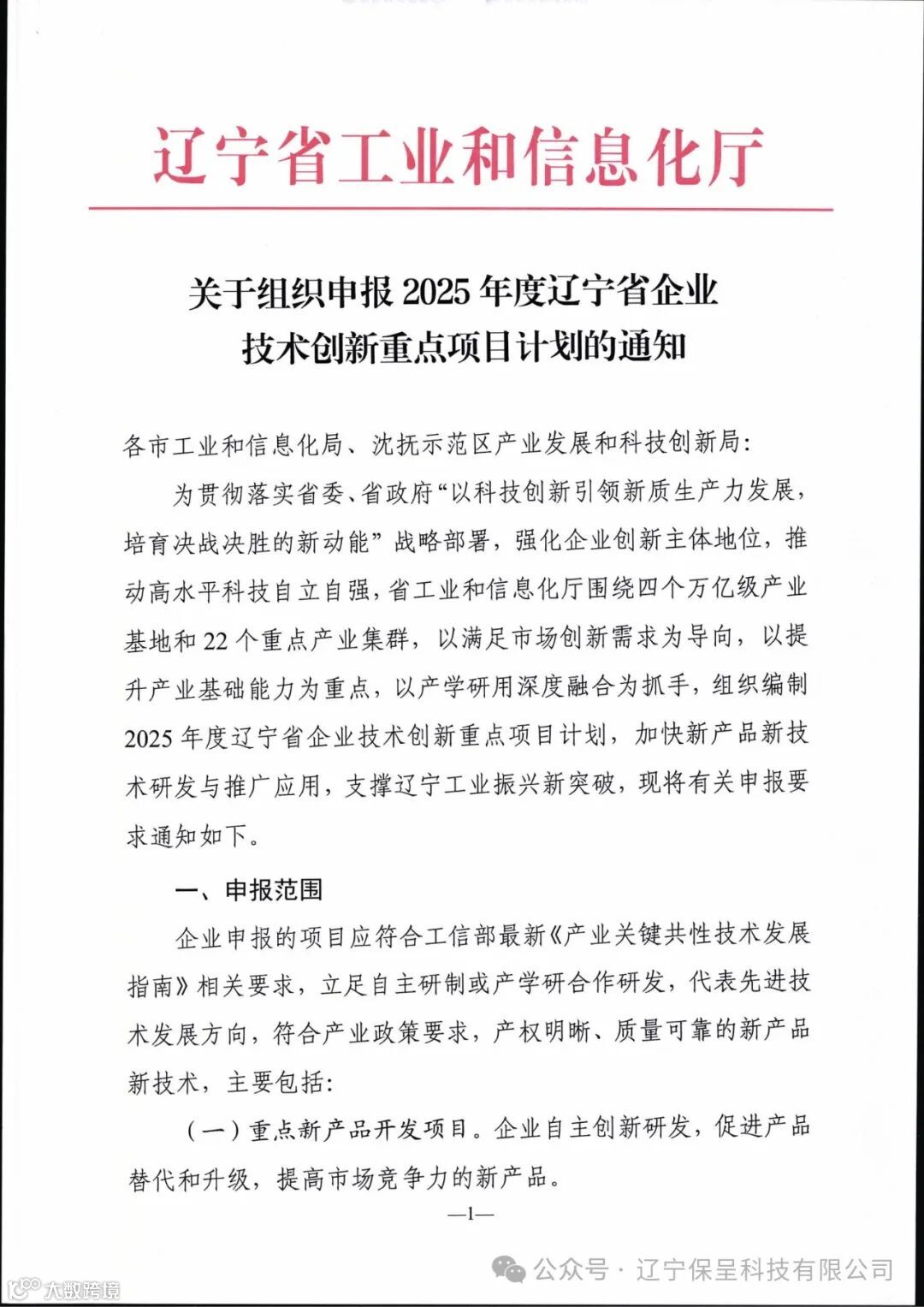 保呈快讯内容:关于《关于组织申报2025年度辽宁省企业技术创新重点项目计划的通知》-内容分享