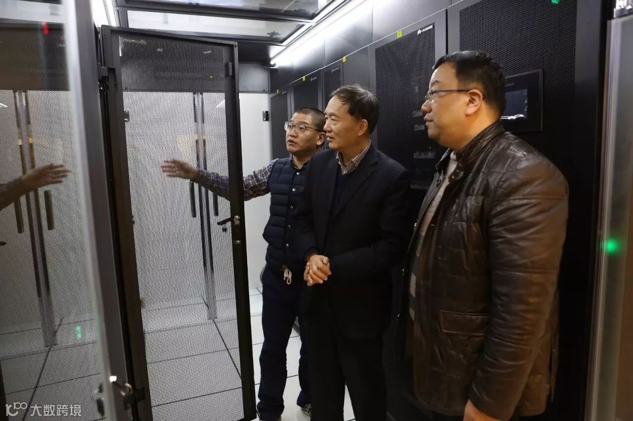 ▲图为黄文惠董事长向周曦民秘书长和上海超算中心魏玉琪部长介绍最新的云数据中心机房。