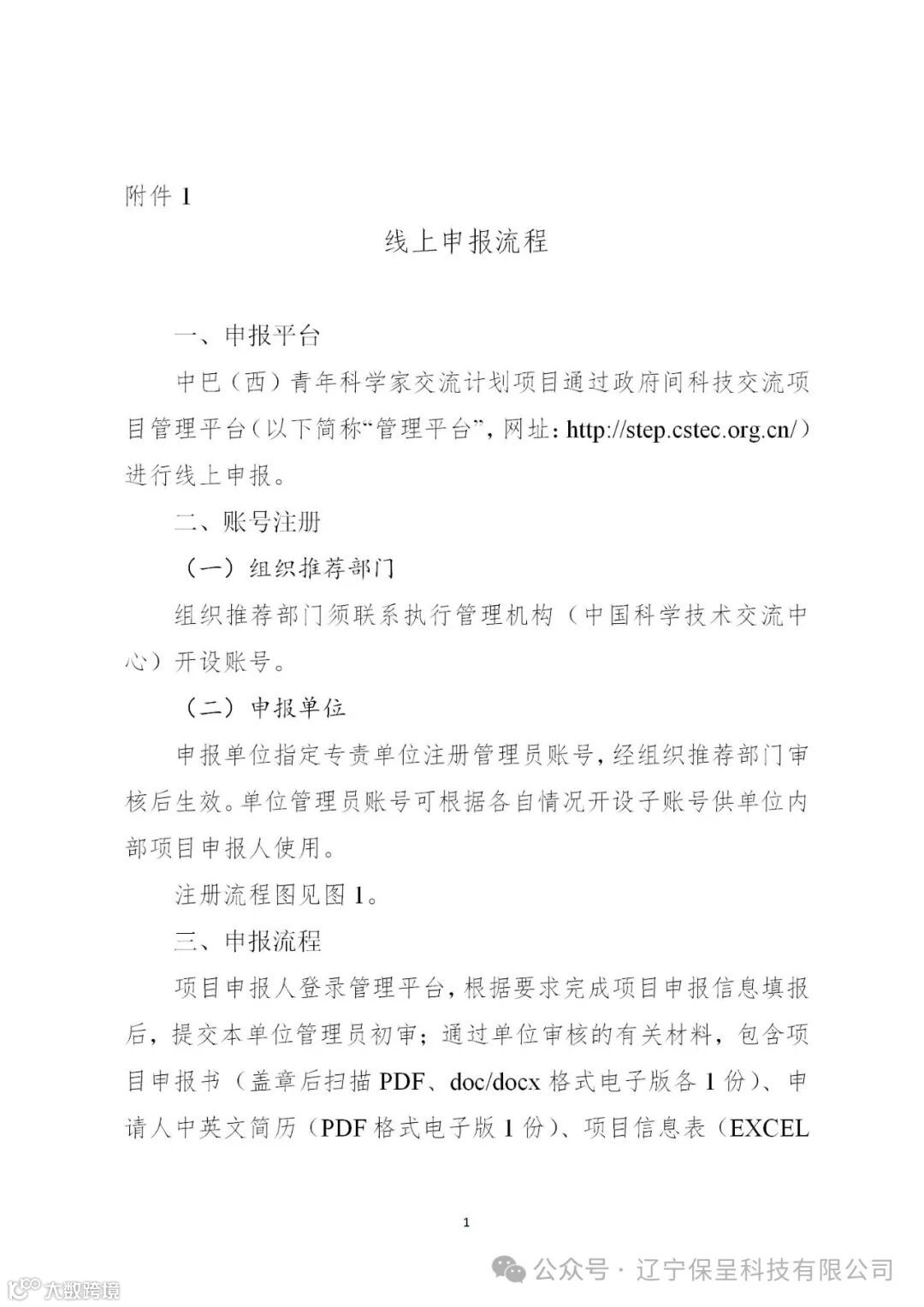 (二)项目申报需通过政府间科技交流项目管理平台(以下简称“管理平台”)进行,网址为:http://step.cstec.org.cn/。组织推荐部门需联系执行管理机构申请账号。申报单位在管理平台注册账号,经组织推荐部门登录已申请账号并审核后,可进行申报(项目申报流程见附件1)。