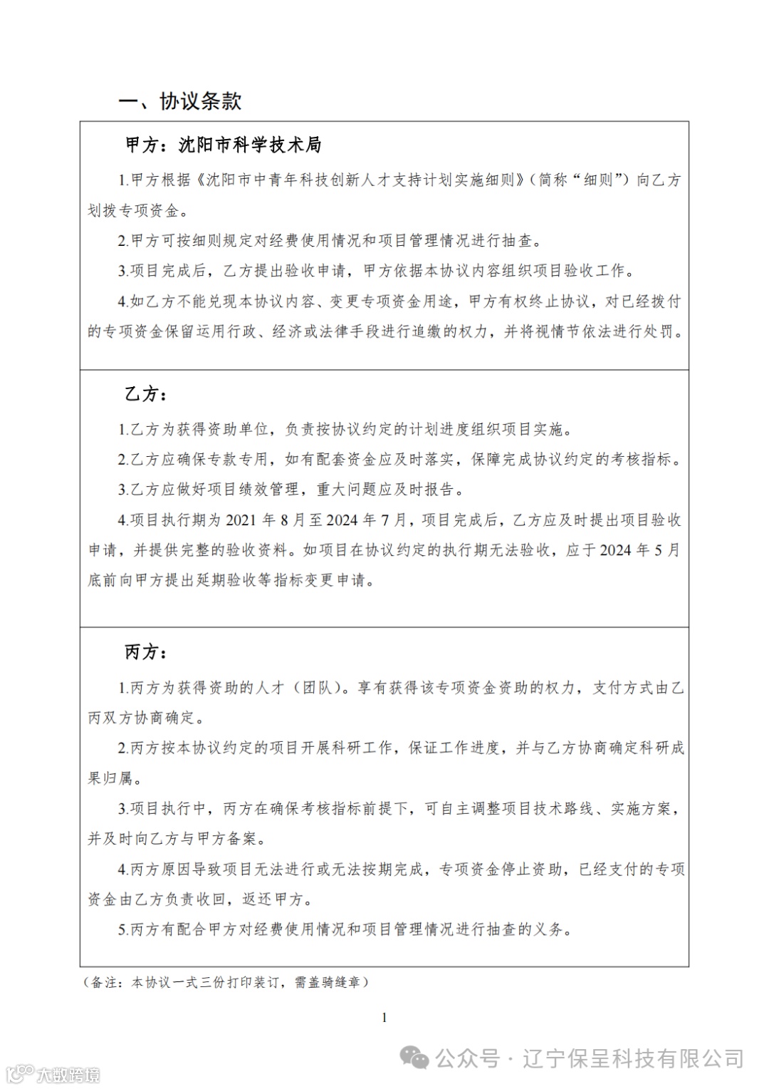 辽宁保呈科技有限公司保呈快讯内容:关于《关于开展2021年度沈阳市中青年科技创新人才支持计划项目结题验收工作的通知》-内容分享