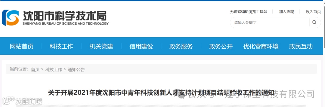 保呈快讯内容:关于《关于开展2021年度沈阳市中青年科技创新人才支持计划项目结题验收工作的通知》-内容分享