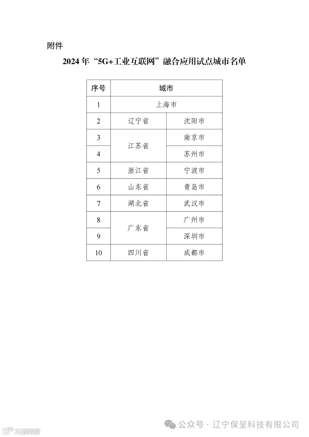 保呈快讯内容:关于《关于2024年“5G+工业互联网”融合应用试点城市名单的公示》-内容分享