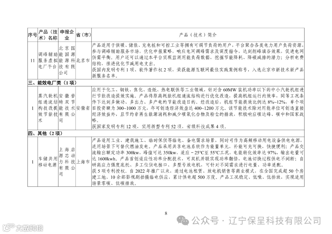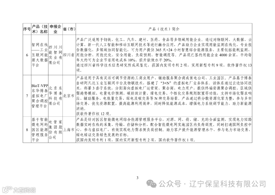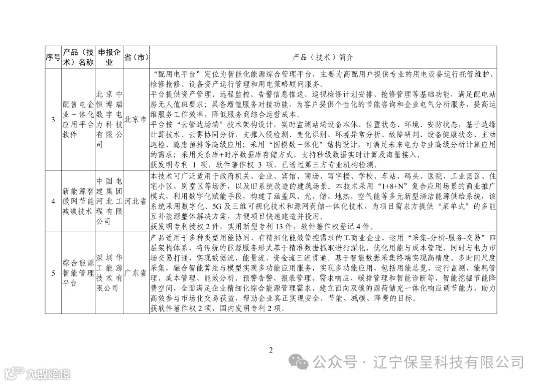 保呈快讯内容:关于《全国工业领域电力需求侧管理第六批参考产品(技术)拟入选目录公示》-内容分享