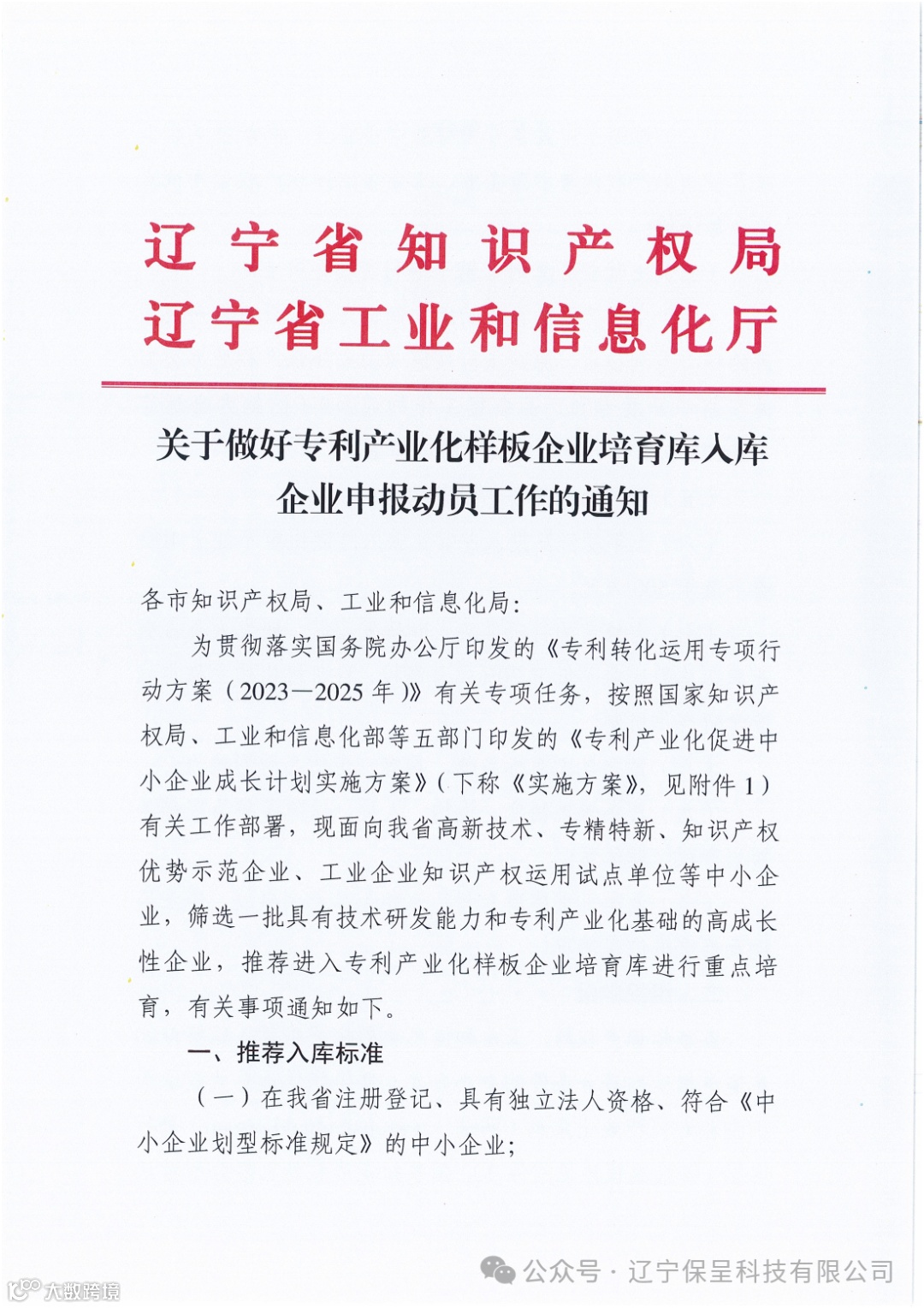 保呈快讯内容:关于《做好专利产业化样板企业培育库入库企业申报动员工作的通知》-内容分享