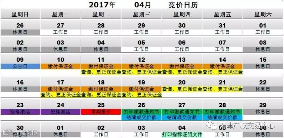 本月小客车增量指标竞价活动将于2017年4月23日至2017年4月25日竞价结束前在竞价系统(www.tjqcjj.com)进行资格激活。本期竞价时间为4月25日上午9时至下午15时。若竞买人因故不能自行激活,可到天津产权交易中心进行现场激活。(天津产权交易中心现场激活时间为4月23日下午2:00-4:30, 4月24上午8:30-11:30下午2:00-4:30)
