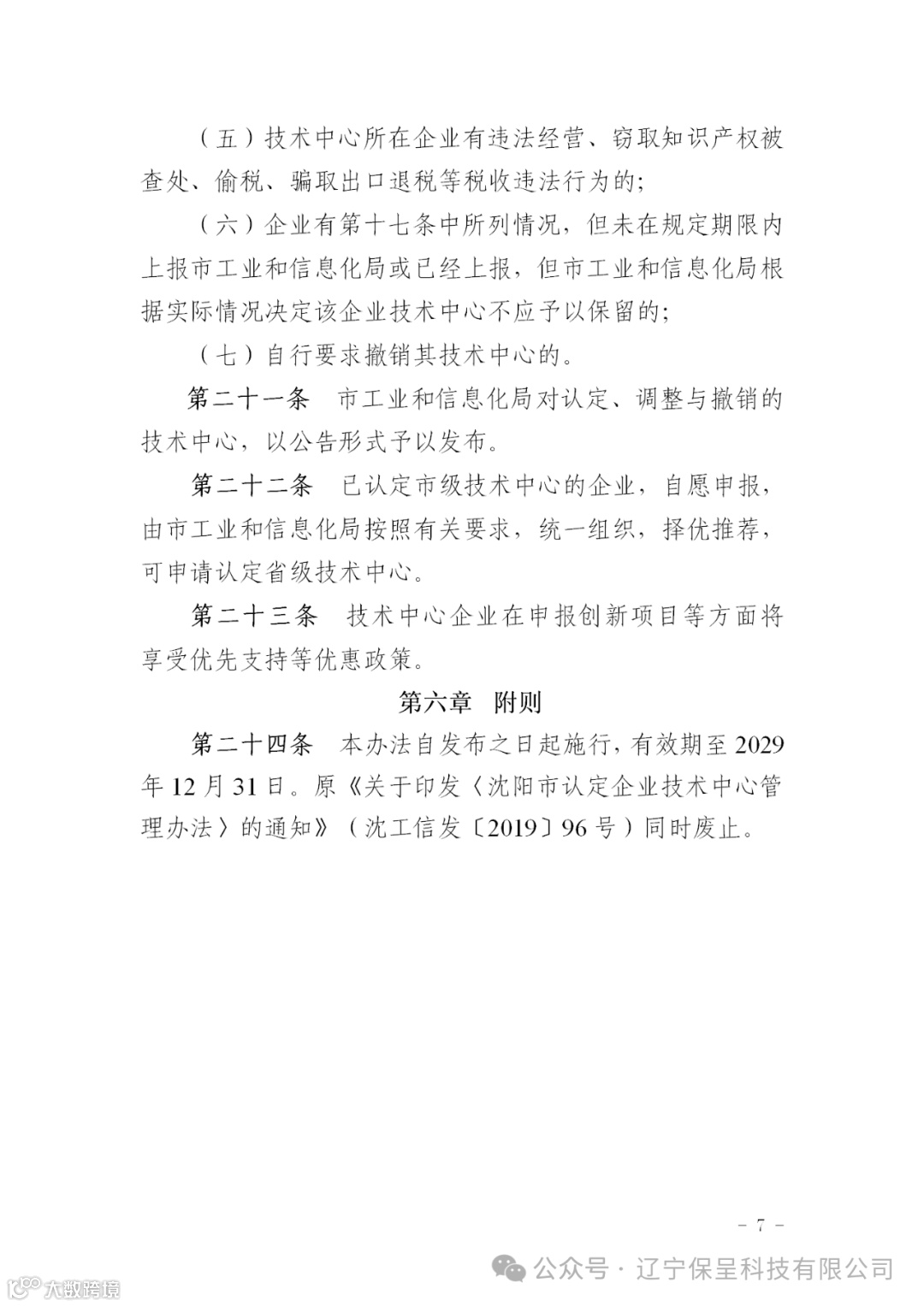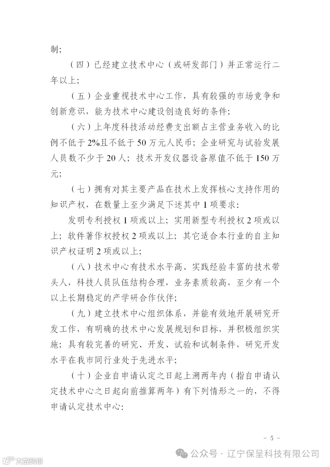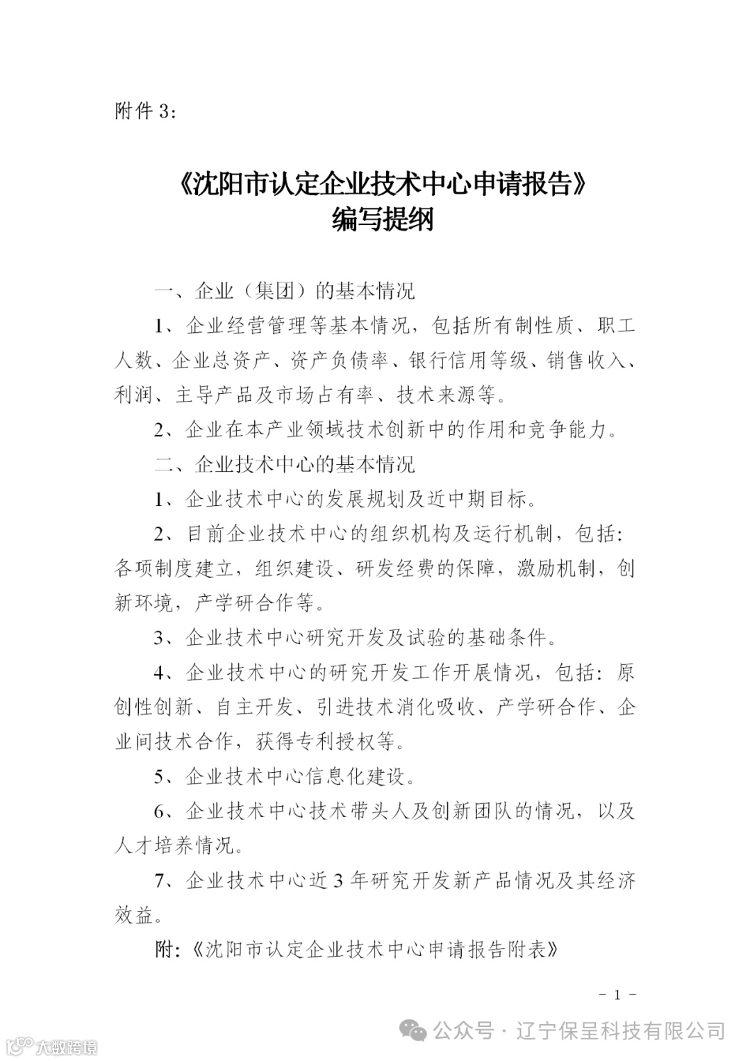 保呈快讯内容:关于《沈阳市工业和信息化局关于组织 申报2024年市级企业技术中心的通知》-内容分享