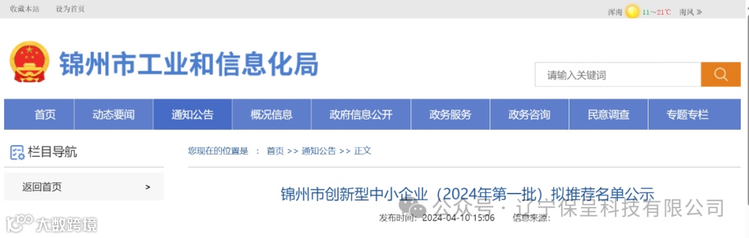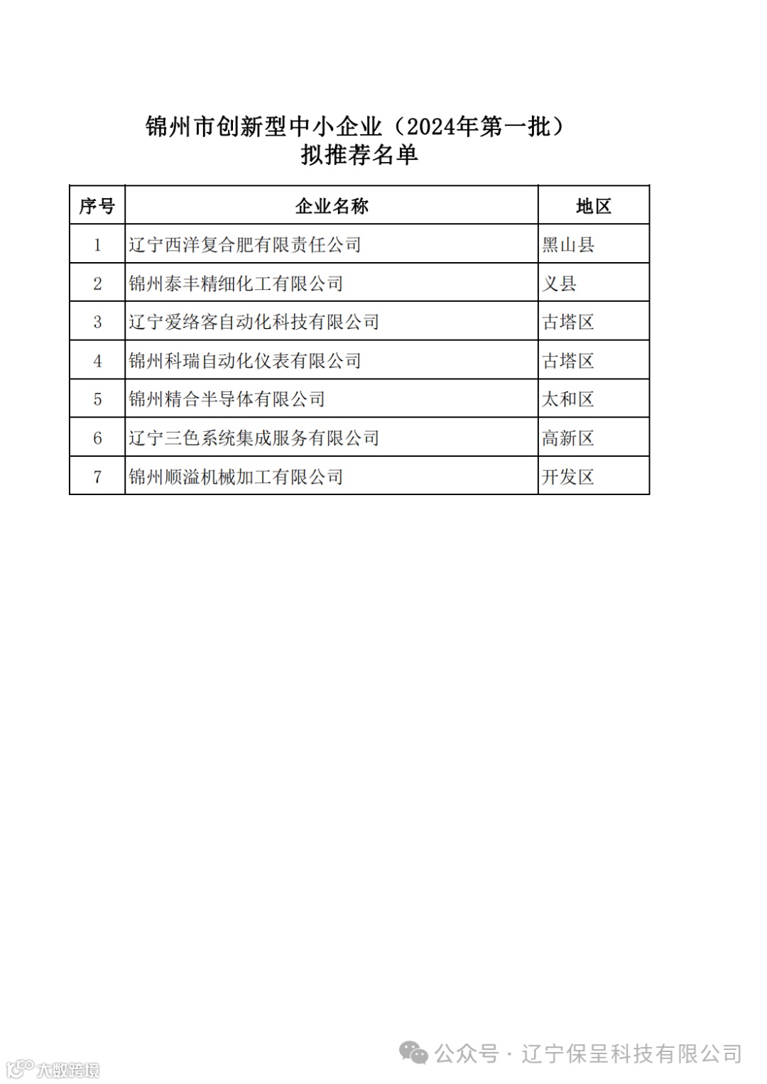 保呈快讯内容:关于《锦州市创新型中小企业(2024年第一批)拟推荐名单公示》-内容分享