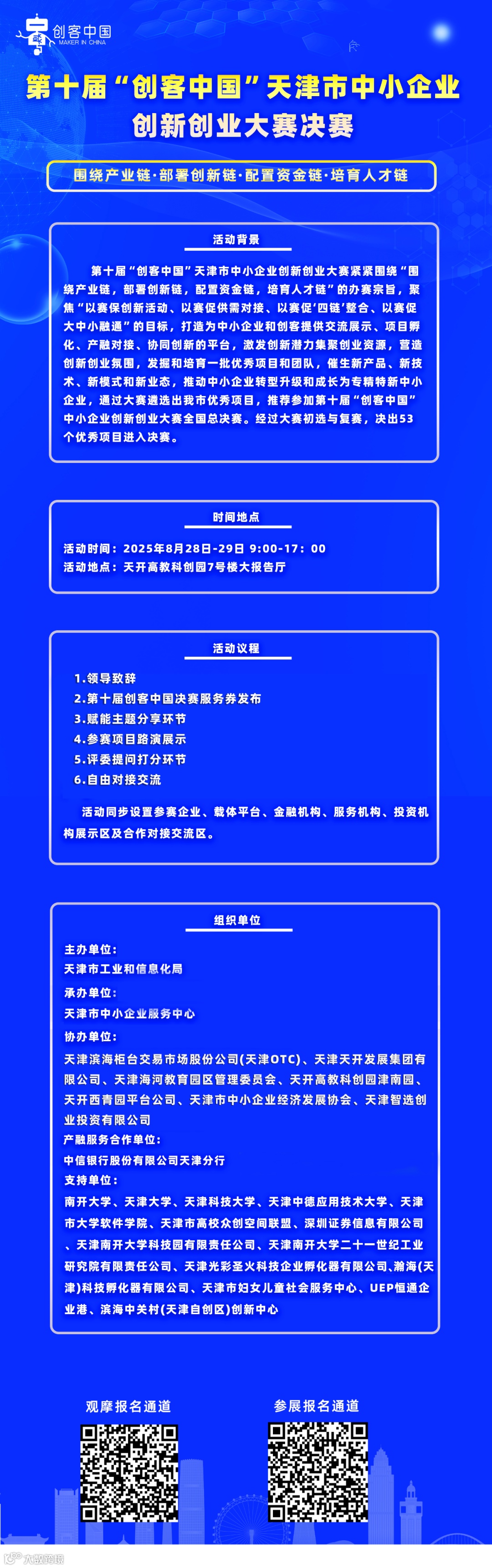 第十届“创客中国”天津市中小企业创新创业大赛决赛|OTC邀请