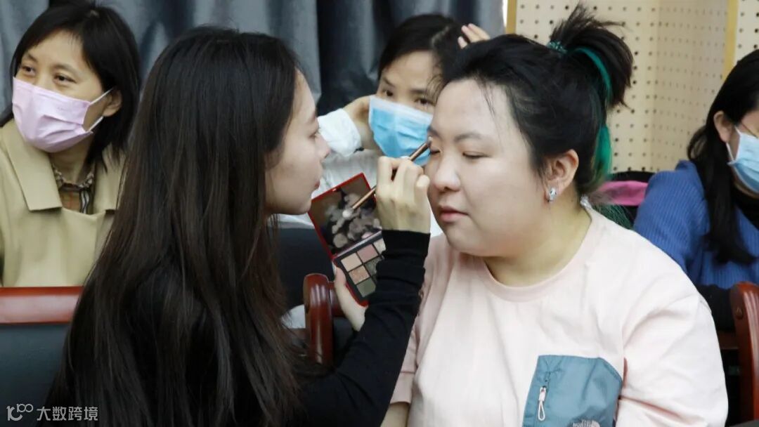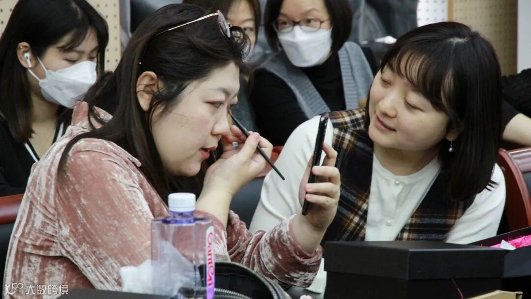 在仔细看过老师的化妆过程后,女员工们也纷纷动手实践,不光细致的为自己整理妆容也和身边的同事互帮互助。