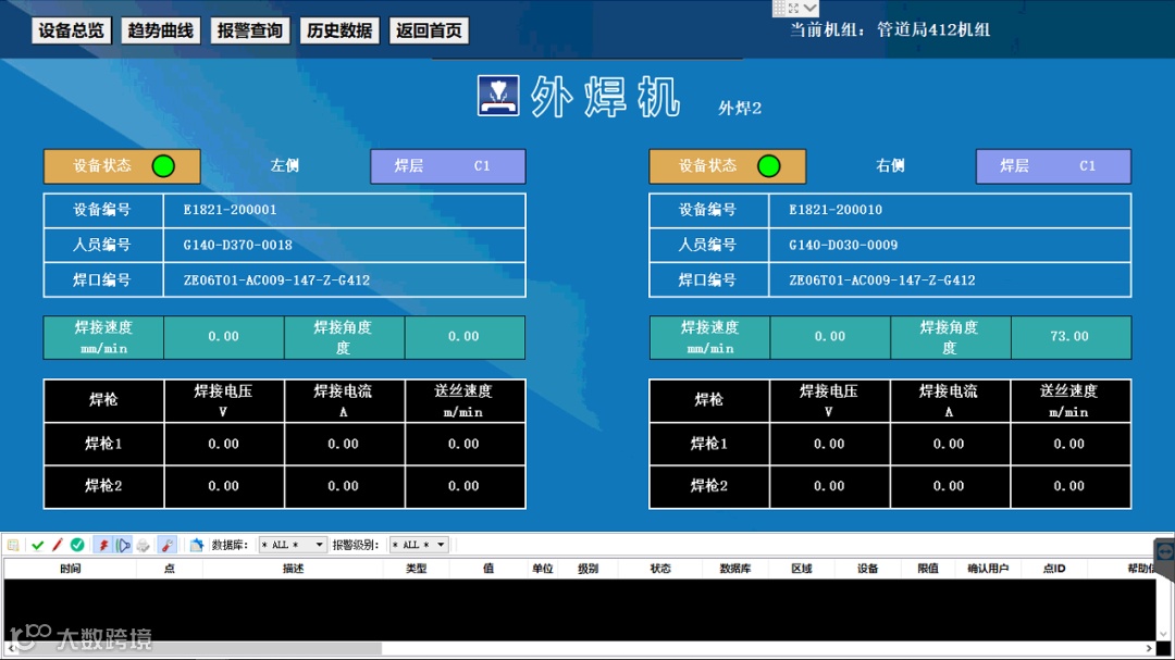 首次实现全自动焊机工况数据HMI人机交互页面,用于展示实时数据和查询历史数据。