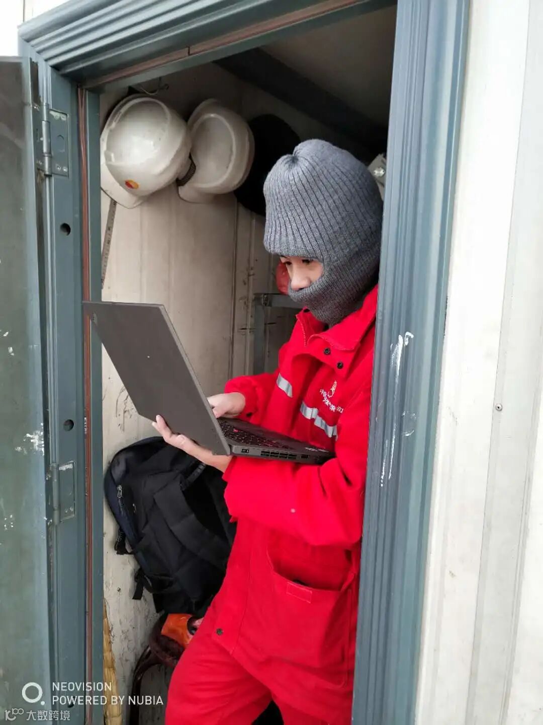 荒野的施工现场,寒风呼啸,他们摘去手套,不畏寒冷,在键盘上敲打着……