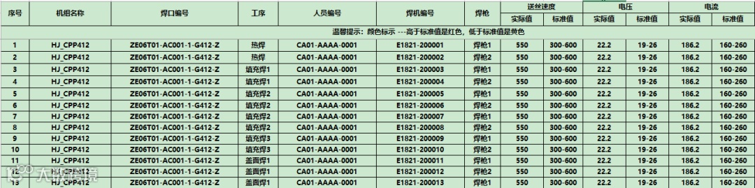 除上述三点,全自动焊机工况参数自动采集及预警分析技术,对不符合工艺规程要求的电流、电压、热输入值进行实时报警,提醒管理人员重点关注出现报警信息的焊口;对热输入预测焊接缺陷位置,与检测结果对比,为智能管道大数据施工质量分析提供了决策支撑。