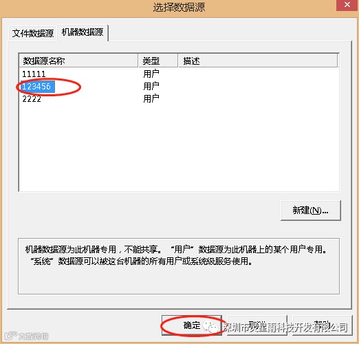 step3:出现“选择数据库源”弹窗,然后选择机器数据源再点击“新建”