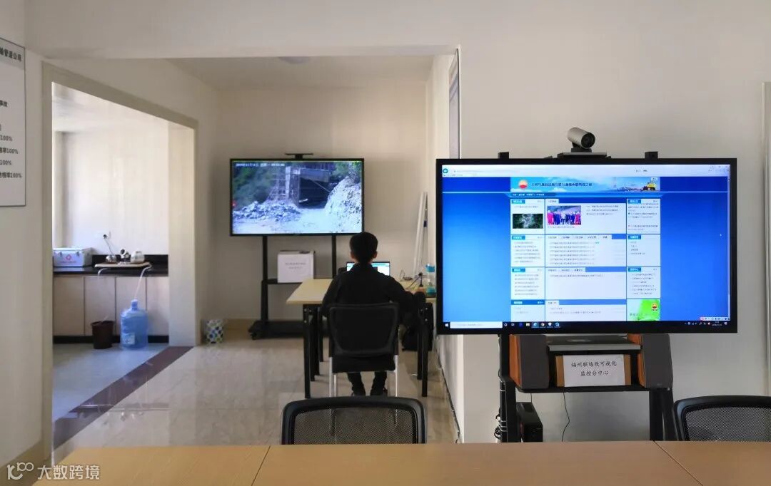 金鸡山隧道出口首次试爆,项目分部监控岗通过视频监控远程监督现场作业。