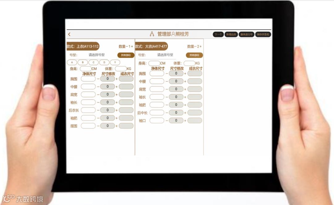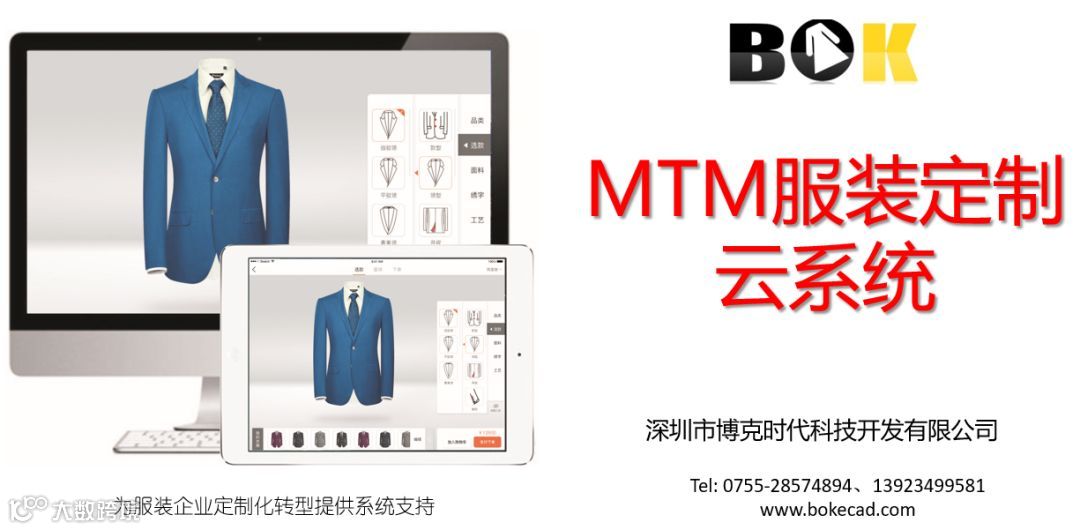 智能试衣魔镜选款式→数据采集(博克智能电子尺),MTM下单→与博克智能定制CAD无缝对接,一键生成服装纸样(博克智能定制CAD系统)→全自动排料(博克超级排料系统)→自动裁剪