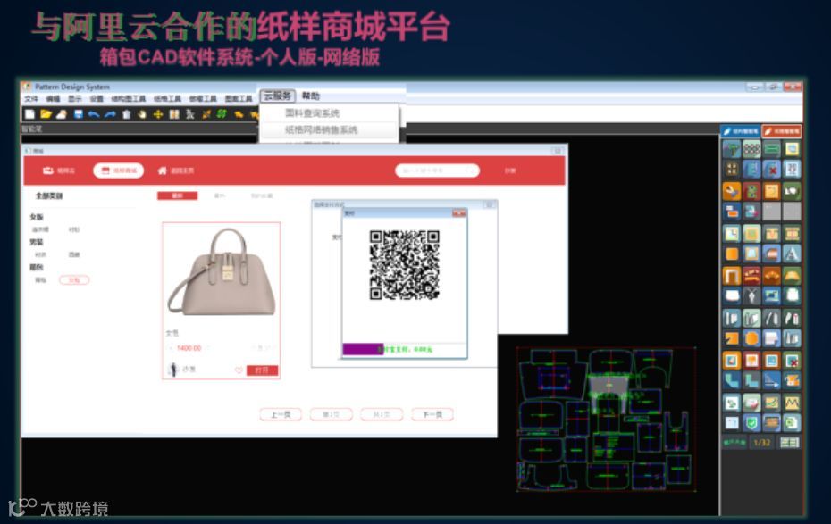 是目前箱包手袋行业同类软件中一款实现网络大数据运用的系统。博克公司与国内最大的手机销售商华为公司达成合作,架构华为的云数据平台与博克CAD软件框架,使博客CAD系统真正实现了互联网+大数据模式。目前的博克CAD服装系统,服装云衣定制系统已经完美诠释了CAD在大数据中的运用。无论你身在何方,只要有网络的地方就能实现网络衣服的量身定制,纸样的有偿共享。企业可以在网络纸格平台查询适合或者接近的纸格有偿下载使用,大大节省版师的出格时间。