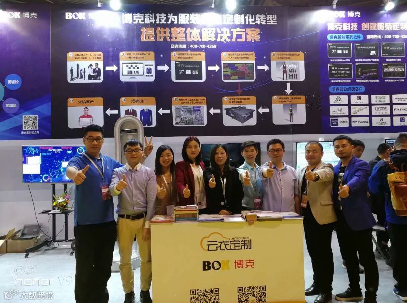 博克科技作为服装定制数字化整体解决方案及服装定制互联网平台研发企业,极力倡导以下服装定制整体解决方案:博克三维人体扫描(或电子尺、手工测量)→云端人体数据测量及存储→博克云衣APP服装下单系统(PC端和移动端)→与博克智能定制CAD无缝对接(一键生成所选款式一人一版的纸样及排料图)→博克虚拟试版系统→自动裁剪设备(裁剪更准确更智能)→智能化缝制(GST工艺系统和MES生产系统进行柔性化生产)→成衣交付。