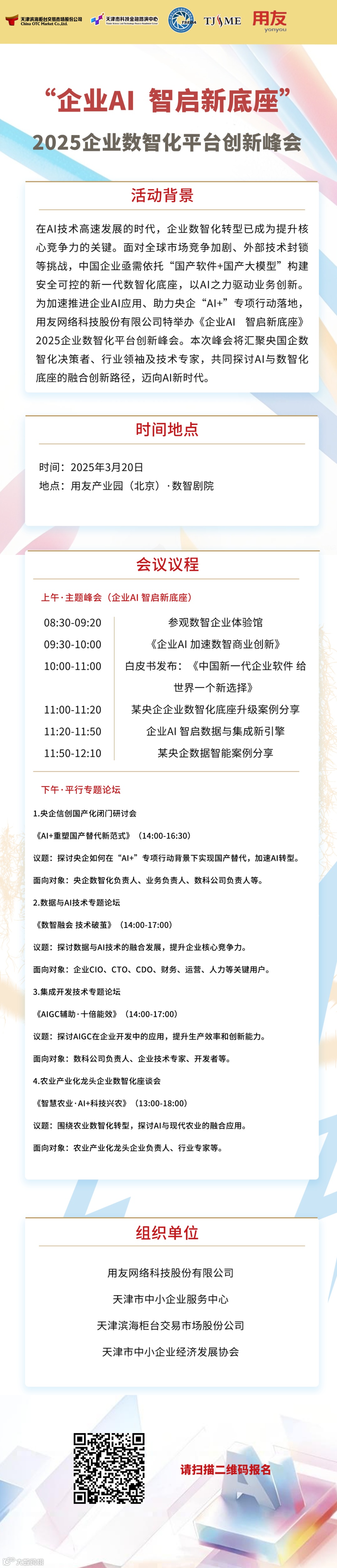 “企业AI 智启新底座"2025企业数智化平台创新峰会|OTC邀请 天津滨海柜台交易市场
