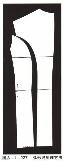 图3-1-226是开弧形线的后背造型图,剪幵弧形线。