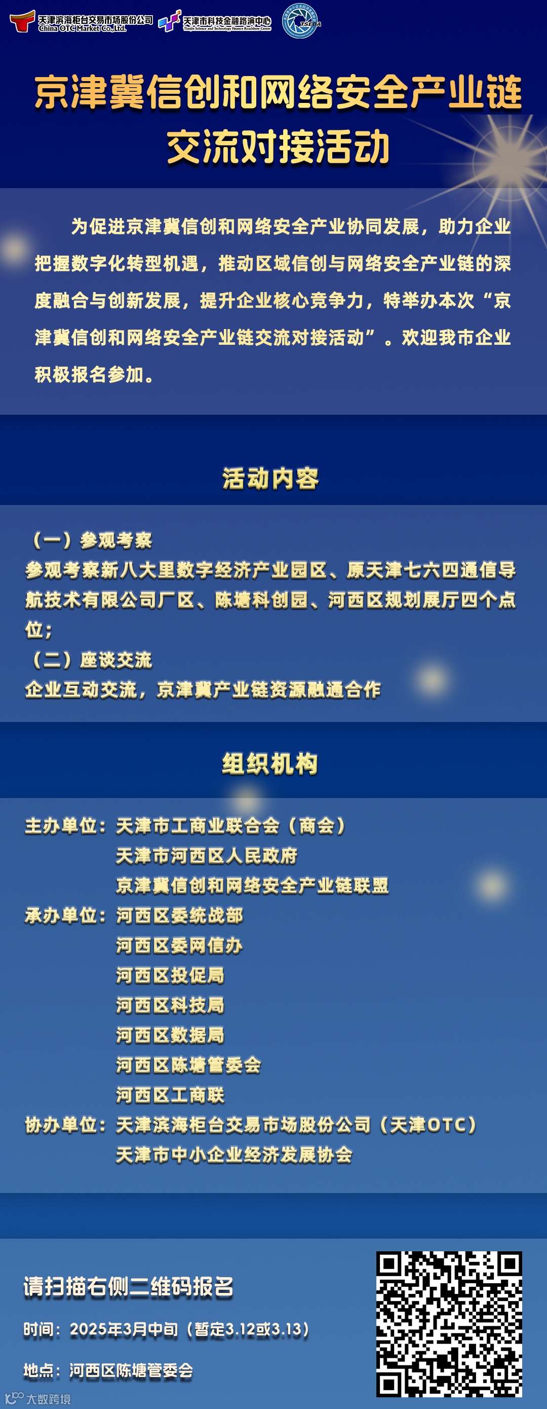 京津冀信创和网络安全产业链交流对接活动|OTC邀请 天津滨海柜台交易市场