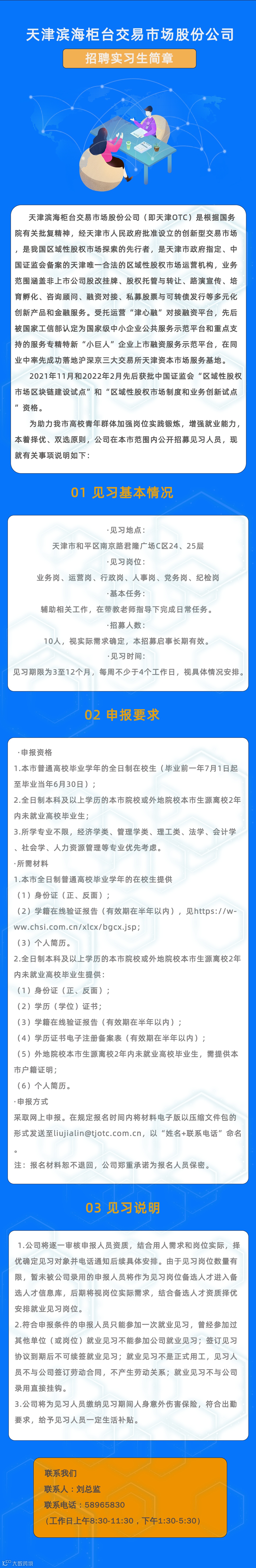 招聘实习生(含金量超高,冲啊!) 天津滨海柜台交易市场