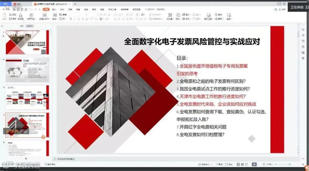 伊始,王老师介绍了使用全电票的优点、其与电子发票主要区别,并结合企业实际,