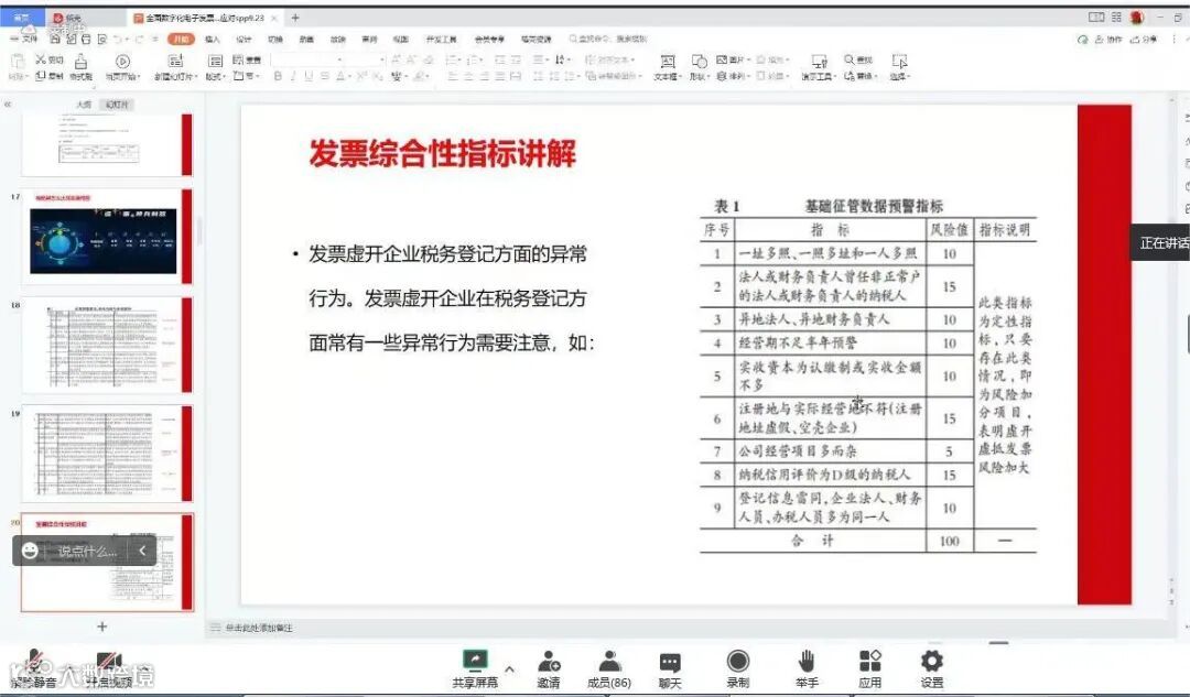 中企业可能需要的调整。随后,进行天津市开票、受票试点方案介绍;并演示了开具全电票的具体操作流程。活动中,王老师着重强调了电子会计档案管理的重要性,并针对开具红字全电票的相关疑问进行解答。
