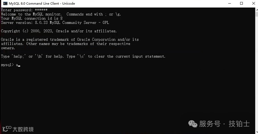 2. 打开命令提示符(CMD),输入命令 mysql -uroot -p ,然后回车,系统会提示输入密码,输入正确的密码回车即可连接