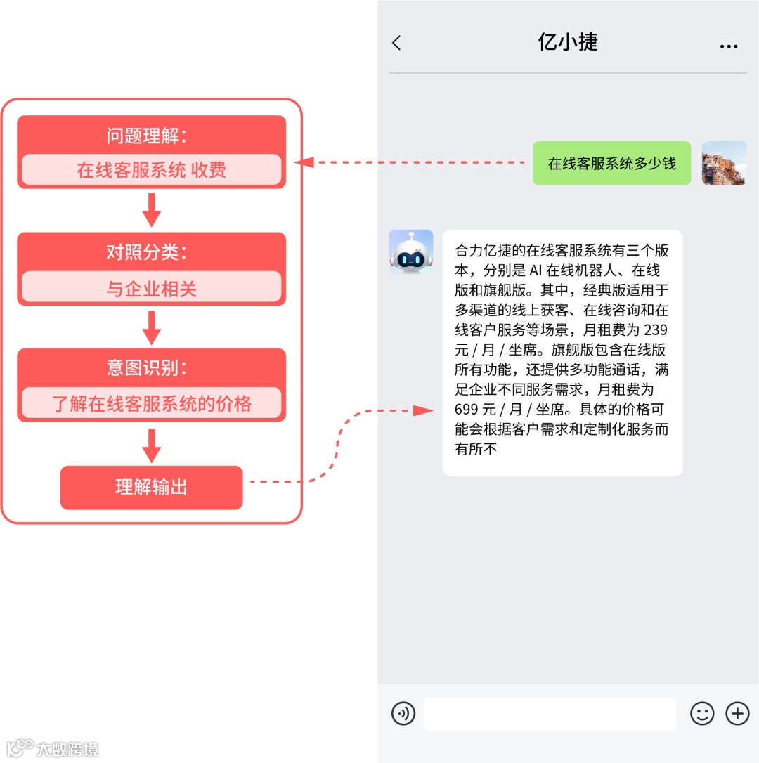 客服Robot的应答流程严格遵循自身逻辑。当与用户对话时,首先是理解用户的问题,并将所有问题分为「与企业相关、与企业无关、敏感问题」三个类别。