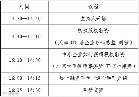 融资是企业发展关注的重要问题之一,获得资金支持无异于在企业向着目标奔跑的过程中,插上一双腾飞的翅膀。为了帮助企业了解各类融资方式,关注融资过程中的常见问题,有效拓展融资对接渠道,进而结合企业实际情况规划融资发展路径,为今后高效开展融资,助力企业发展进行准备,同时为企业获得融资服务支持搭建平台,天津OTC联合启迪之星(天津·生态城)共同推出线上融资培训活动,活动安排如下: