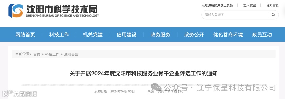 保呈快讯内容:关于《关于开展2024年度沈阳市科技服务业骨干企业评选工作的通知》-内容分享