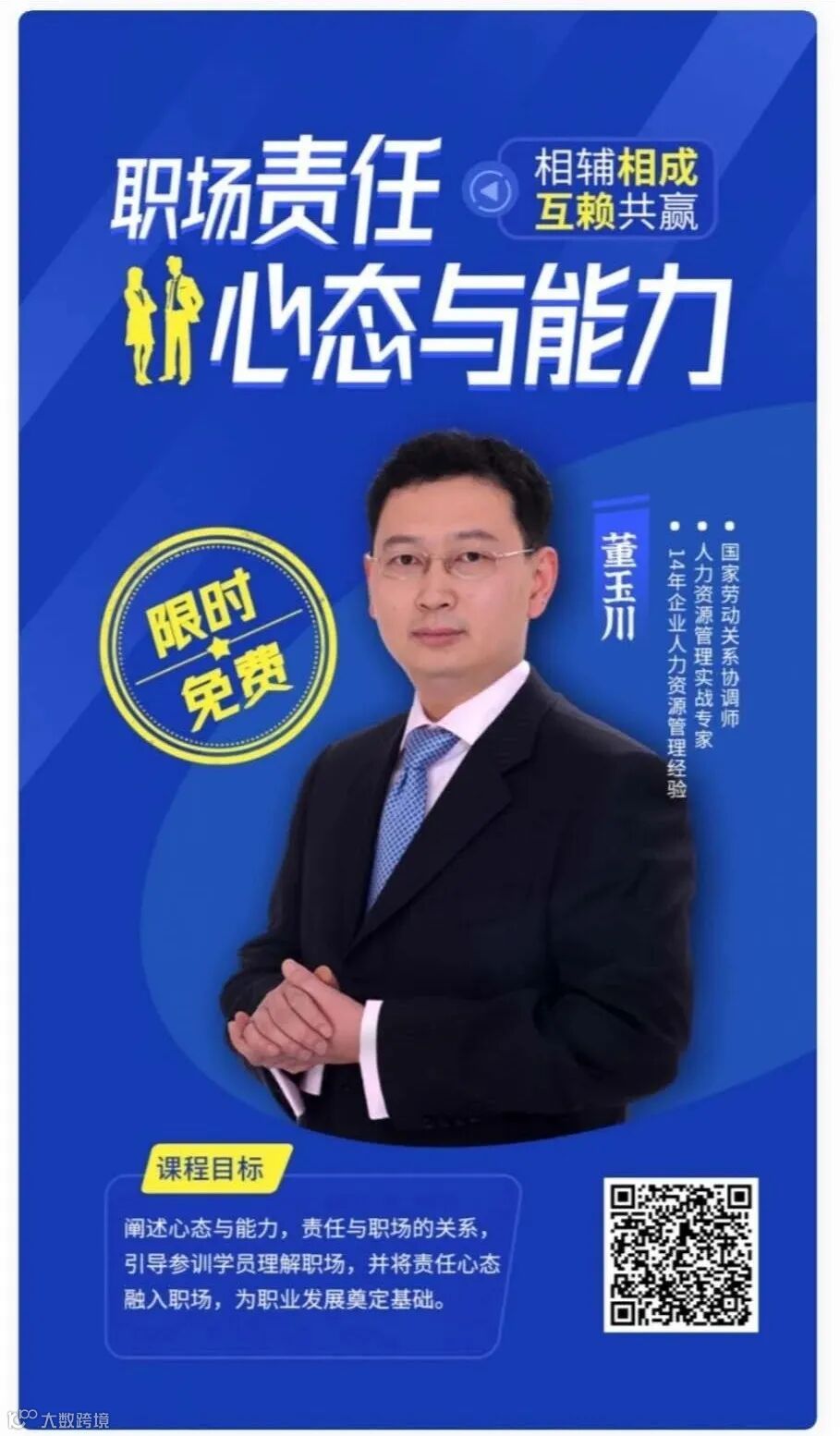 从负责任到有责任,建立职场责任系统化,15年团队管理实战经验/心态团队效能提升教练董玉川老师,将为朋友们阐述心态与能力,责任与职场的关系,帮助大家理解职场,并将责任心态融入职场,为职业发展奠定基础。