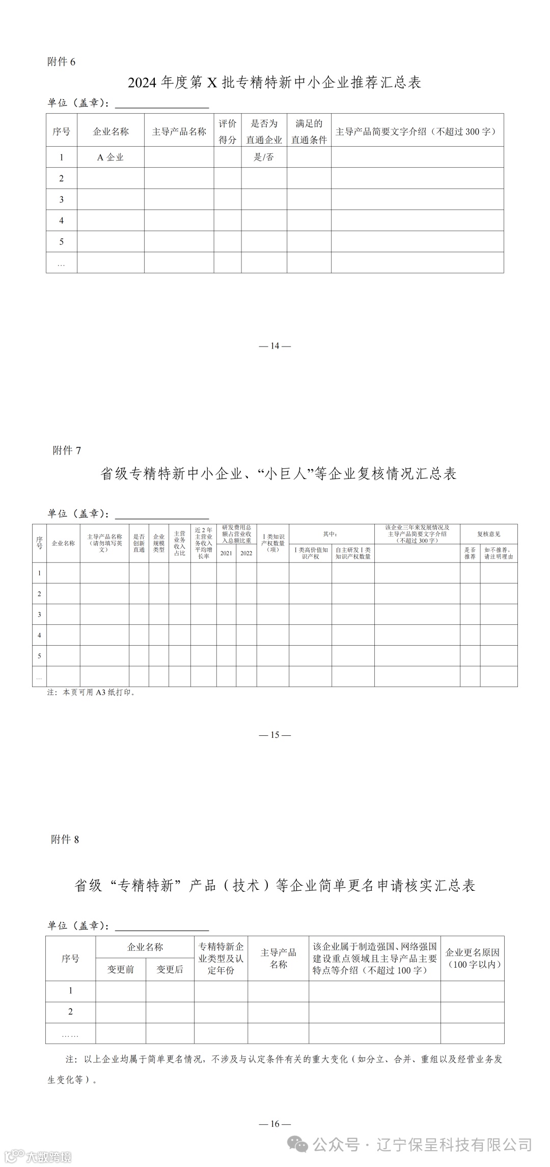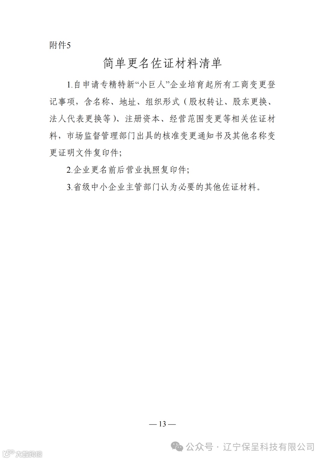保呈快讯内容:关于《辽宁省工业和信息化厅关于做好2024年度专精特新中小企业申报工作的通知》-内容分享