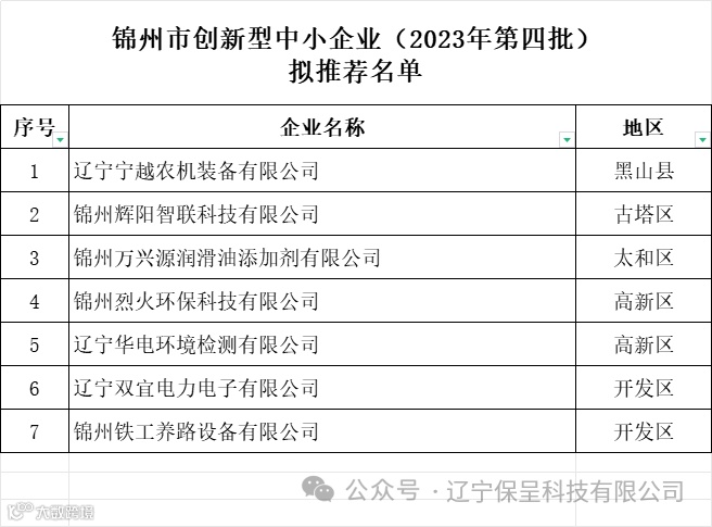 保呈快讯内容:关于《锦州市创新型中小企业(2023年第四批)拟推荐名单公示》-内容分享