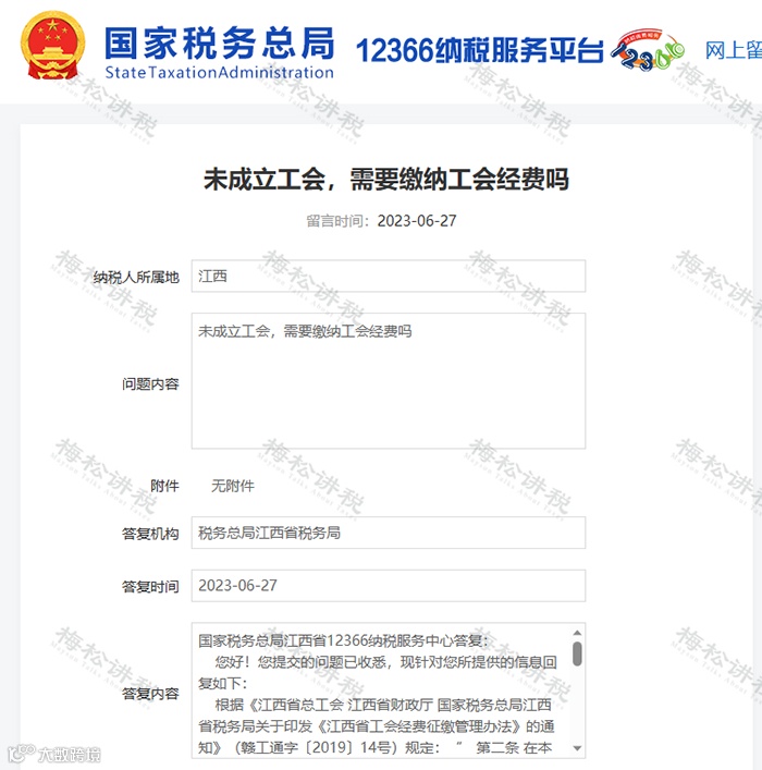 根据《江西省总工会江西省财政厅国家税务总局江西省税务局关于印发<江西省工会经费征缴管理办法>的通知》(赣工通字〔2019〕14号)规定: