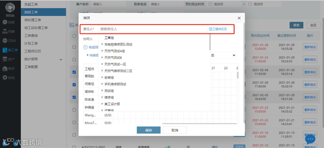 合力微工单,客服可以发起并指派工单,支持指派到工单池,服务团队,或工程师个人。