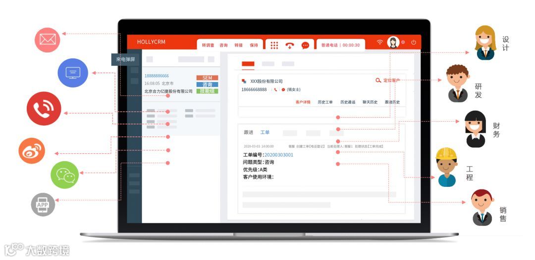 多渠道:系统统一接入/处理电话、在线、邮件、短信、APP工单信息;