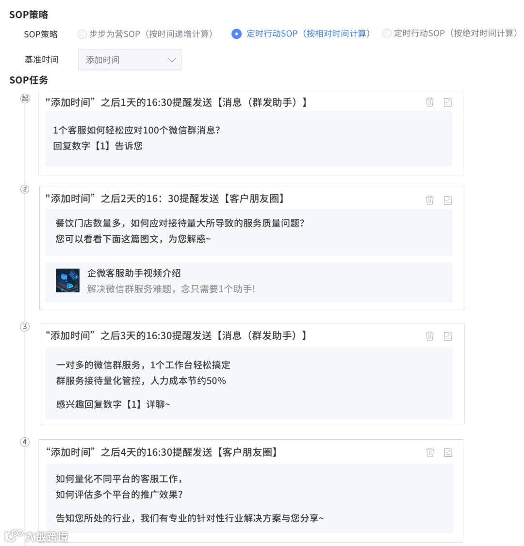 内容作为整个线索孵化的重中之重,是能够刺激线索用户兴趣关注度的核心关键;优质的内容来源,大可先结合过往的优质文章及销冠成功话术,形成碎片化、句式短的优质文案,让用户在短时间内就能清晰进行内容感知;再将整理好的内容按时间设计线放在自动化工具进行填充;