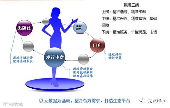 浙江省新华书店集团以云数据为基础,整合各方需求,打造生态平台。出版社、发型中盘、门店等各方都有不同需求,因此要做到服务三端:上端,要满足精准选题、精准印刷;中端要精准采购、精准营销和基础保障;下端要实现精准服务、满足个性化需求等。