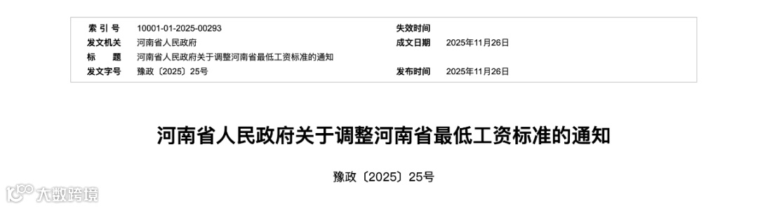 11月26日,河南省人民政府发布关于调整河南省最低工资标准的通知。