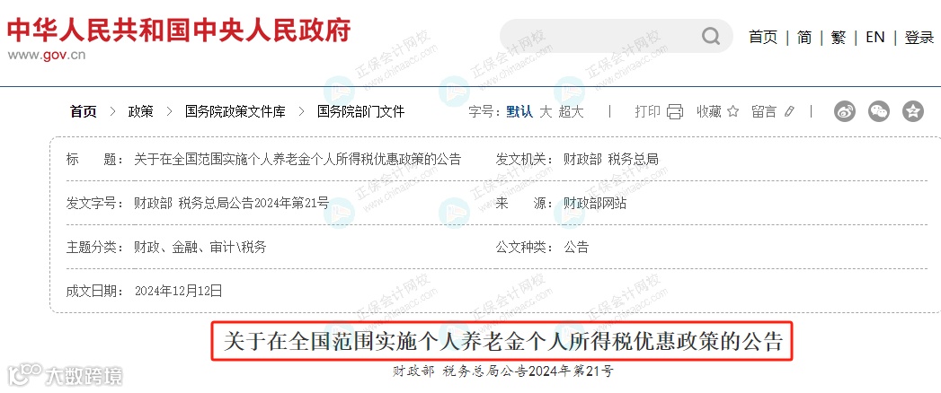 自2024年1月1日起,在全国范围实施个人养老金递延纳税优惠政策: