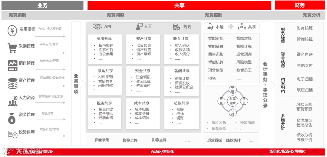 在用友“无人值守”财务共享的建设思路下,智能化工具成为共享员工的重要助手,代替员工完成事务性工作,实现流程超自动化、服务无人化、决策支撑智能化的业务目标,智能化工具也可以大幅度提升工作效率和质量,激发共享员工的新活力。共享部门可以通过持续训练智能工具,不断提升AI的“智慧”,实现“人机协同共发展”的作业模式,助力共享转型升级为数智共享。