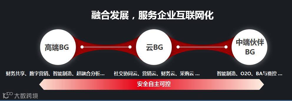在这个历史机遇面前,用友要做的是赋能大生态。在新的时期,用友不断推进新一代企业软件与云服务的大融合。目前用友的高端BG、云BG和中端伙伴BG三大事业群业务互相融合发展,共同服务企业互联网化。其中,在高端业务上将以用友NC6和用友U9为核心产品线,从财务共享、数字营销、智能制造、超融合分析等领域服务大型企业互联网化。在此领域,用友也已经积累了很多经验。诸如帮助碧桂园建立财务共享服务中心,以全年支撑碧桂园全球化快速增长:将服务近1000家项目公司、70000多名员工、9大类全业务共享。智能制造解决方案则利用新技术帮助航天八院构建了智慧八院,实现了总装厂产能提升15%、库存下降22%、制造成本降低10%、计划按期完成率提高25%。