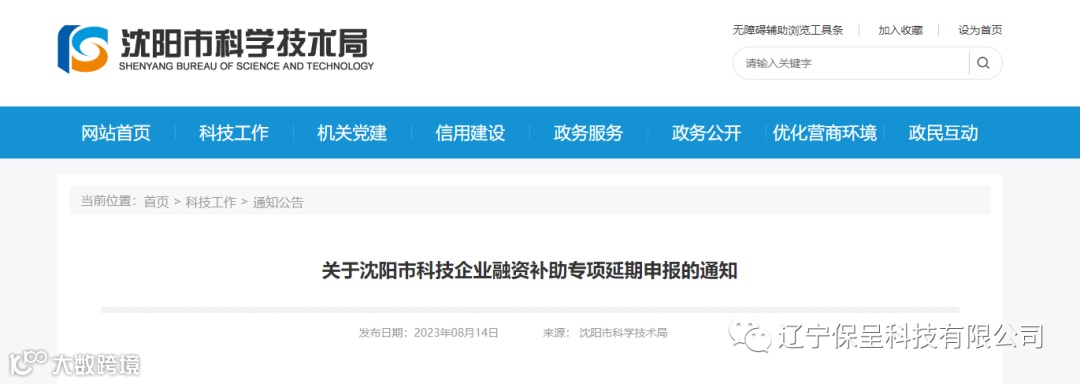 保呈快讯内容:关于《沈阳市关于沈阳市科技企业融资补助专项延期申报的通知》-内容分享