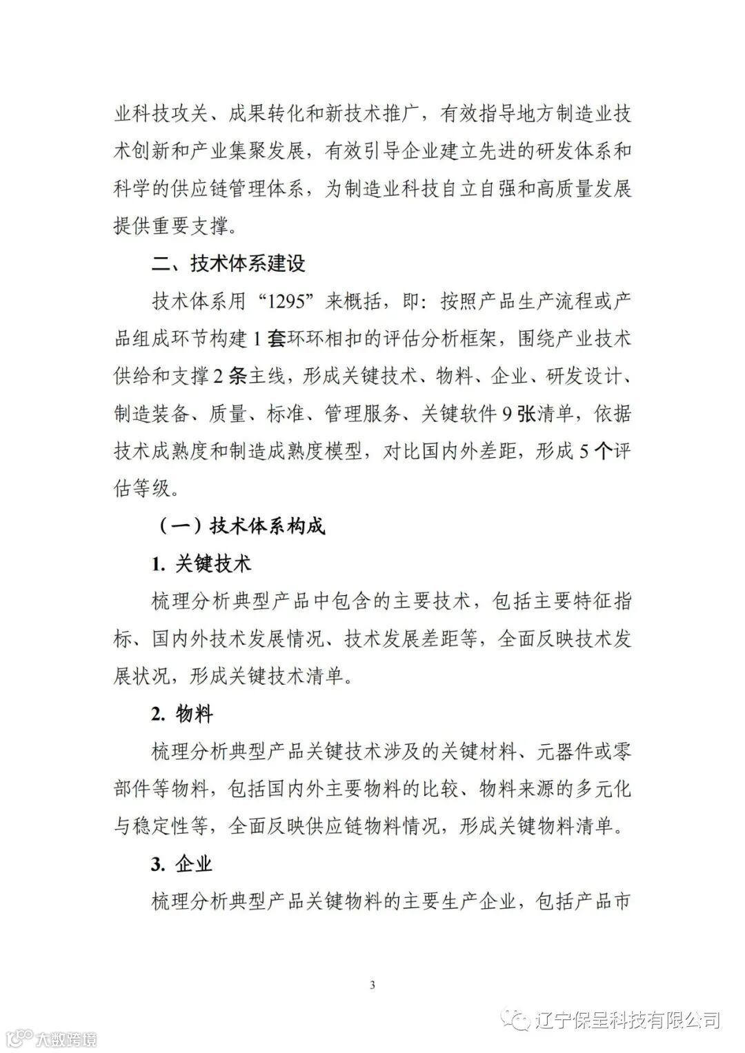 辽宁保呈科技有限公司保呈快讯内容:关于《工业和信息化部关于印发制造业技术创新体系建设和应用实施意见的通知》-内容分享