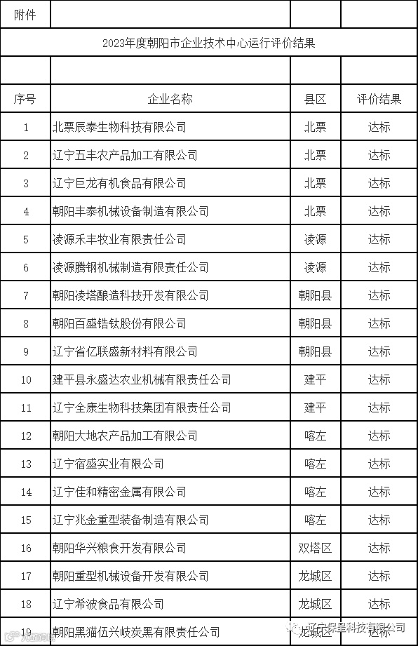 辽宁保呈科技有限公司保呈快讯内容:关于《朝阳市朝工信发〔2023〕15号 关于印发市级企业技术中心 2023年评价结果的通知》-内容分享