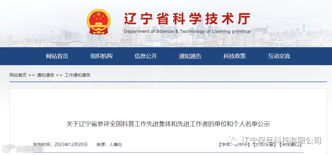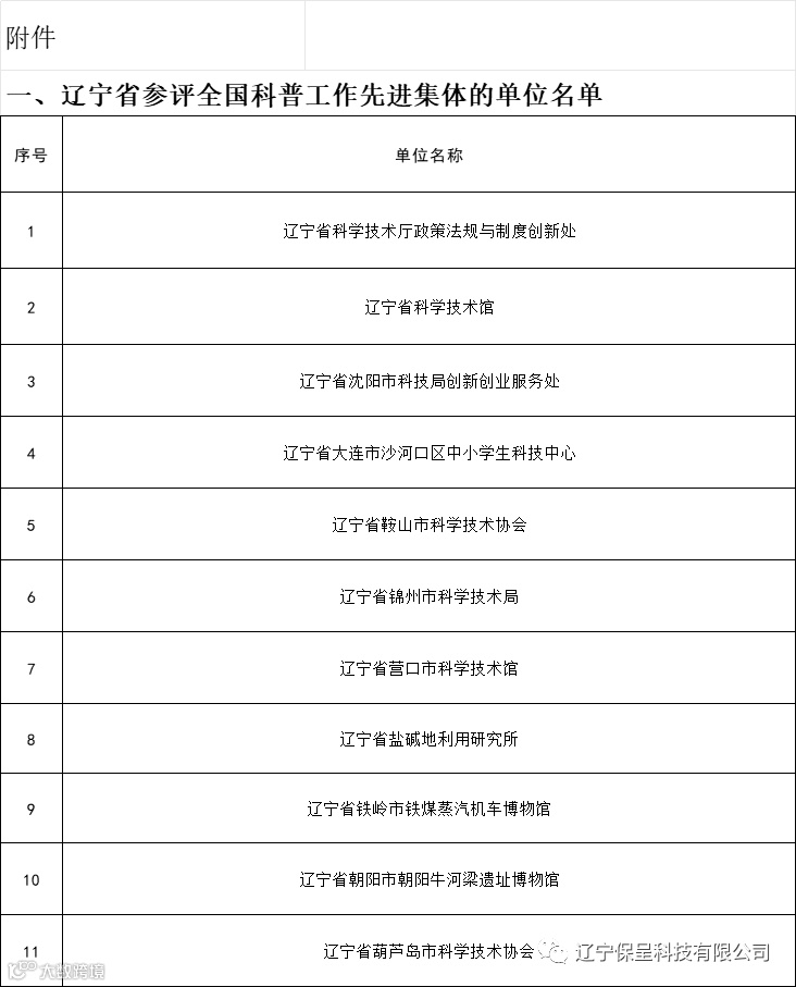 保呈快讯内容:关于《关于辽宁省参评全国科普工作先进集体和先进工作者的单位和个人名单公示》-内容分享